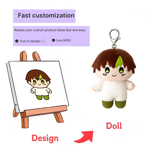 Low Moq ODM OEM Custom Drawing Design Plush Doll Animal Humanoid Doll Plush Keychain Custom