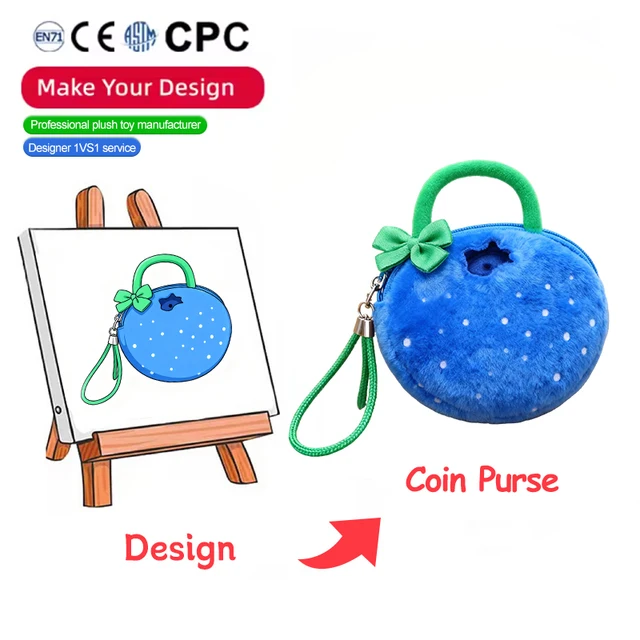 Manufacturer Customize Your Plushie Design Low Moq Custom Plush Coin Purse Plush Animal Toys Custom Plush Purse